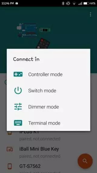 Step-3: Once you click on the device, you would be connected to the transceiver. It would now prompt you to enter the mode that you wish to use. Select “Switch” mode.