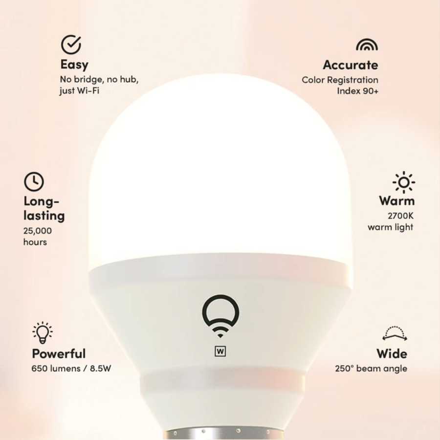 LIFX Mini White is a smart WiFi light that allows you to dim your light and enjoy different temperatures of White. It is not an ordinary light bulb but a smart bulb which can be controlled by voice or app.